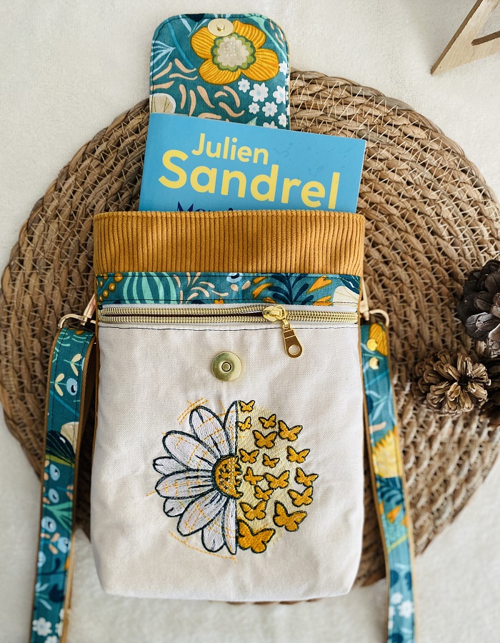 Faites rimer lecture et élégance avec cette pochette à livres brodée et faite main, imaginée et confectionnée avec soin dans mon atelier près de Saintes, sous la signature G en équilibre.